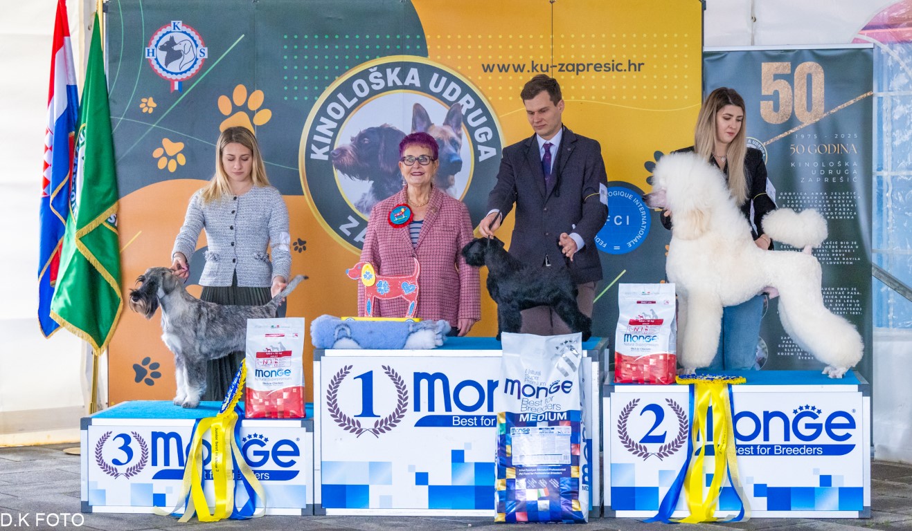 1. Aidante Miss Split, šnaucer patuljasti crni, vl. Ivan Kovačić, Javier Gonzales Mendikote i Ante Lučin